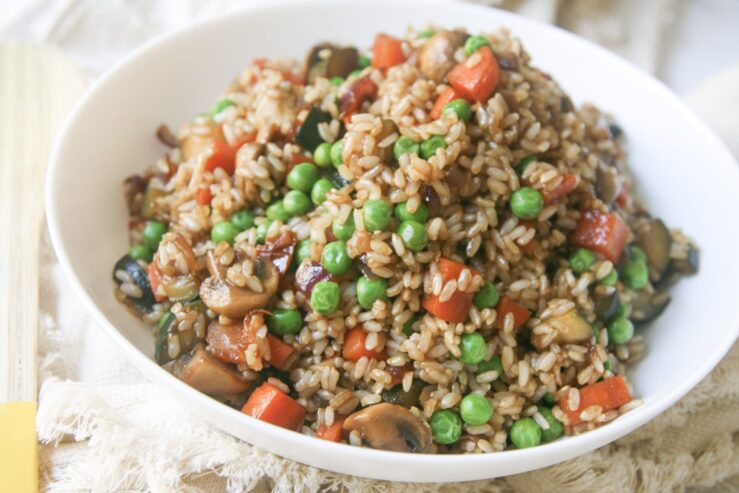 תוספת אורז מושלמת שמורכבת מאורז מלא ושפע ירקות עם רוטב אסיאתי מתקתק וטעים. תוכלו בקלות להפוך אותה למנה עיקרית של ממש עם רק תוסיפו בשלב טיגון הירקות גם חלבון כמו חתיכות עוף או קוביות טופו. ללא גלוטן, טבעוני, 4 מנות 1 בצל קצוץ קטן 1 גזר חתוך לקוביות 1 זוקיני חתוך לקוביות קטנות 10 פטריות […]
